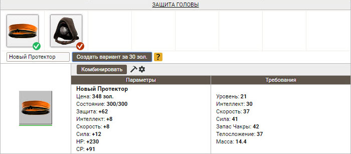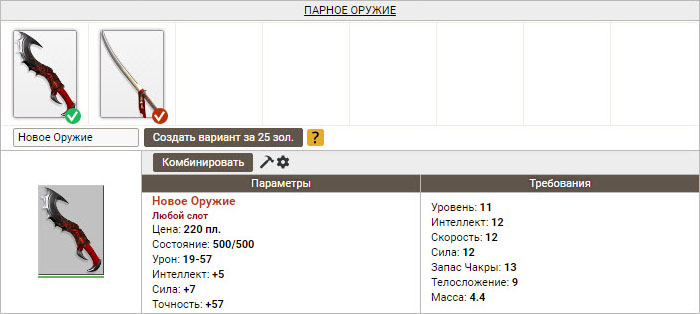 - Вещи, покупаемые в оружейной лавке до 11 уровня, использовать в комбинировании нельзя, как и раритетный комплект Чунина.